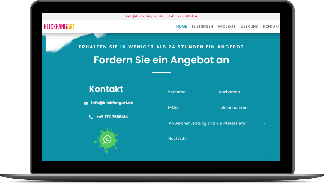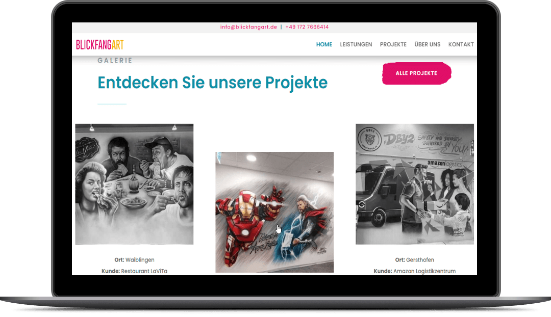 Das Ergebnis ist eine Website, die die Kunst und das Können von Blickfangart hervorhebt und mehr Leads generiert. Wir sind stolz darauf, Blickfangart.de als eine unserer Referenzen zu haben und freuen uns auf weitere spannende Projekte.